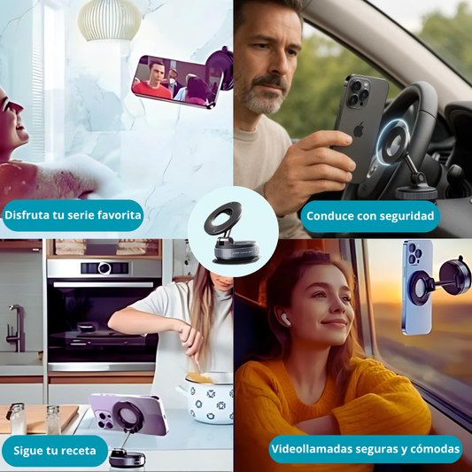 SOPORTE MAGNÉTICO 360° PARA MÓVIL. Succión ultrafuerte. Fijación firme y segura en segundos! Ideal para el coche, hogar y oficina!